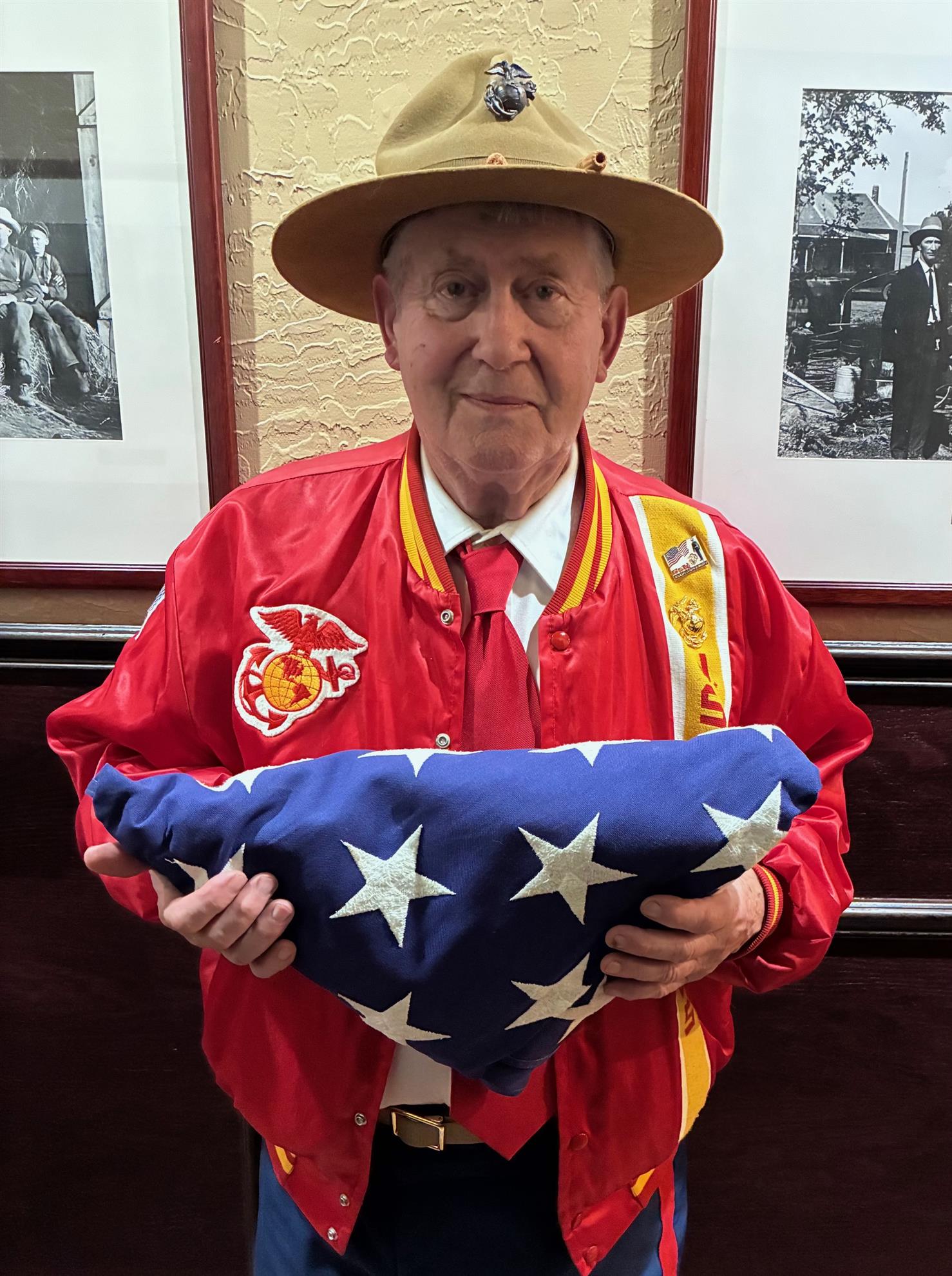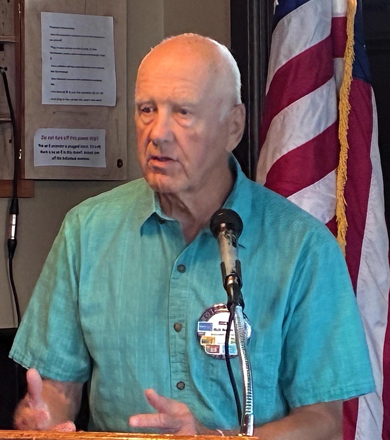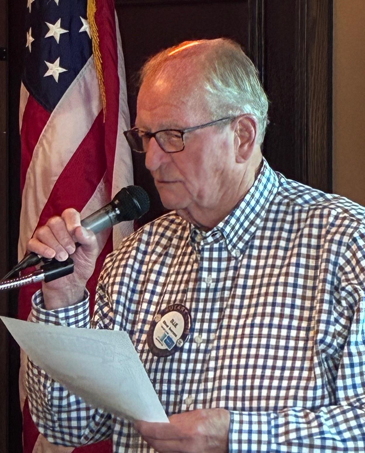 Don Wick introduced our guest speaker for the evening, Lee Sherman, who led us in the Pledge of  Allegiance and then gave a tribute to the flag.  From memory, Lee recited a moving history of the flag, and also honored our veterans.