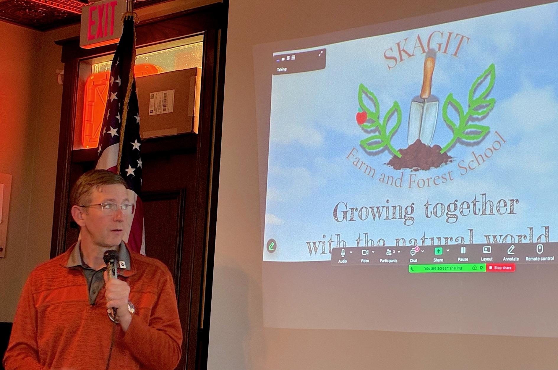 Our guest speaker for the evening: Adam McGarity who talked about the Skagit Farm and Forest School.